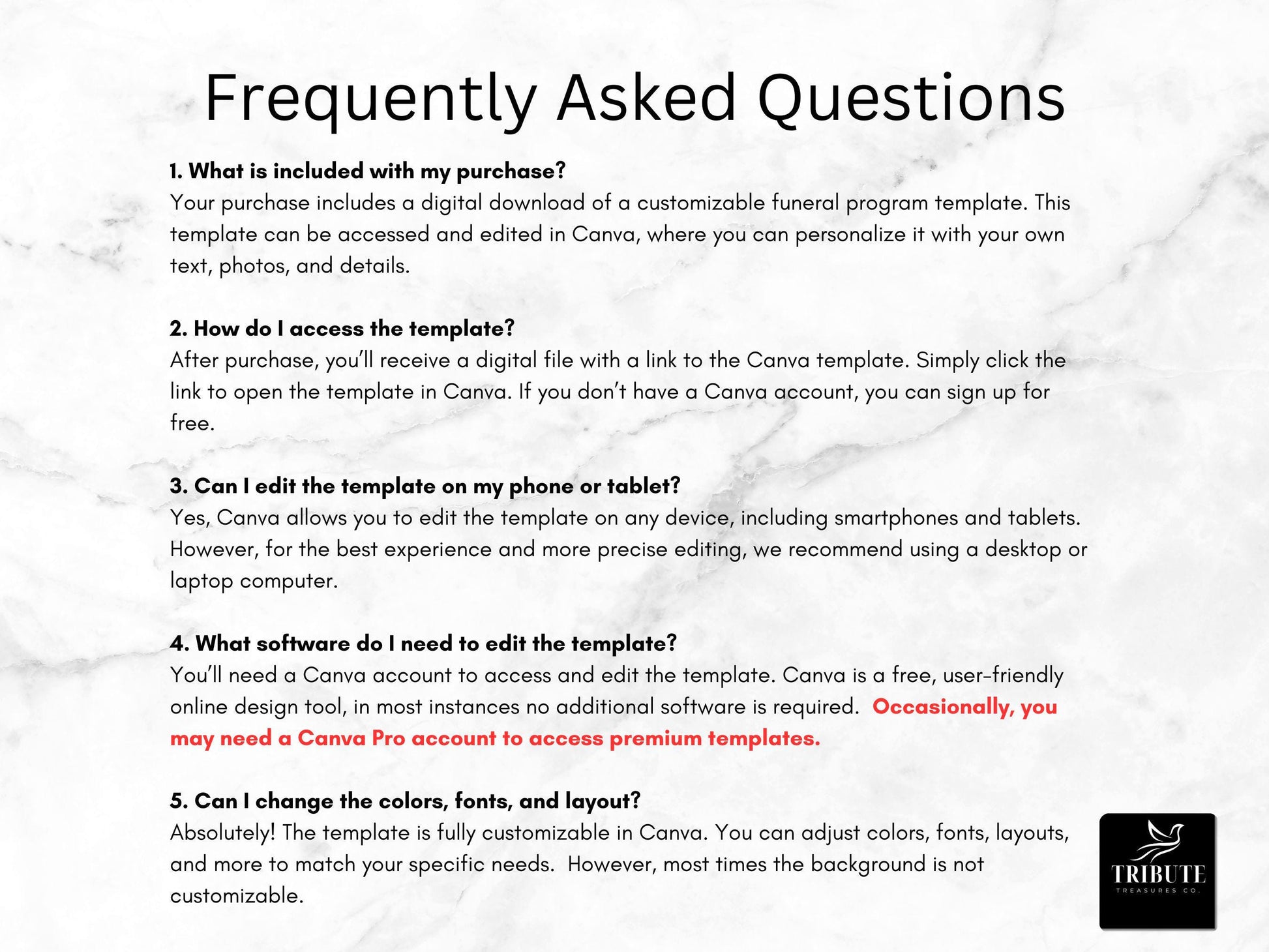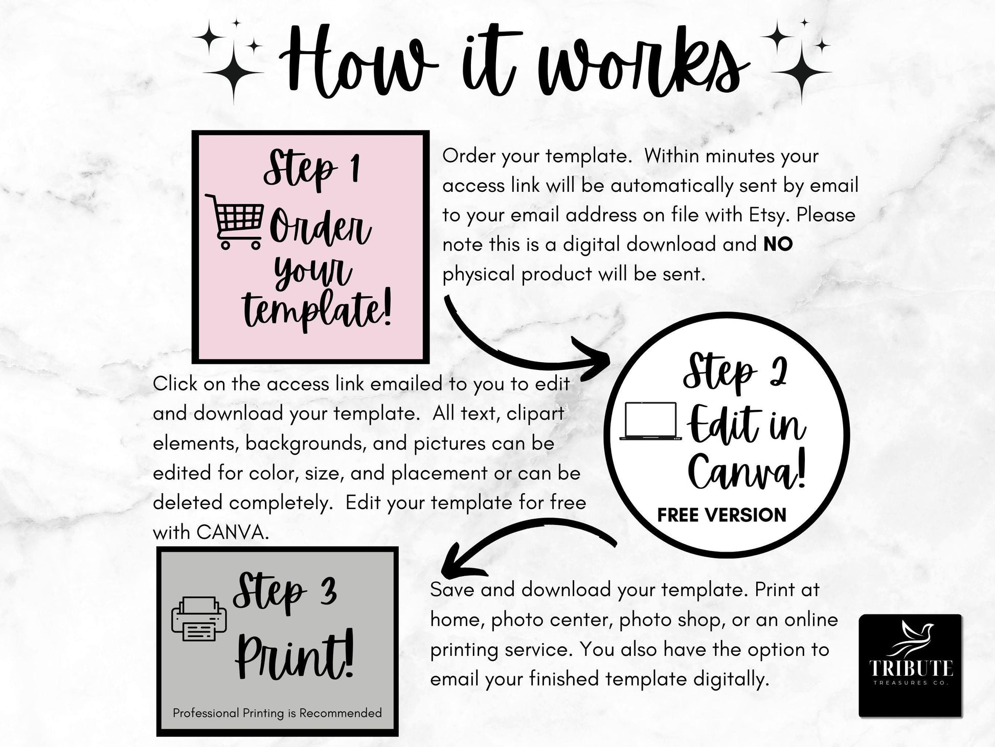 - After purchase, you will receive an email from Shopify with a link to download your PDF file containing the editable Canva Funeral Template.